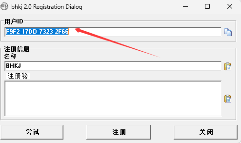 When running it, a registration box for the license key appeared, and my machine code was displayed.
