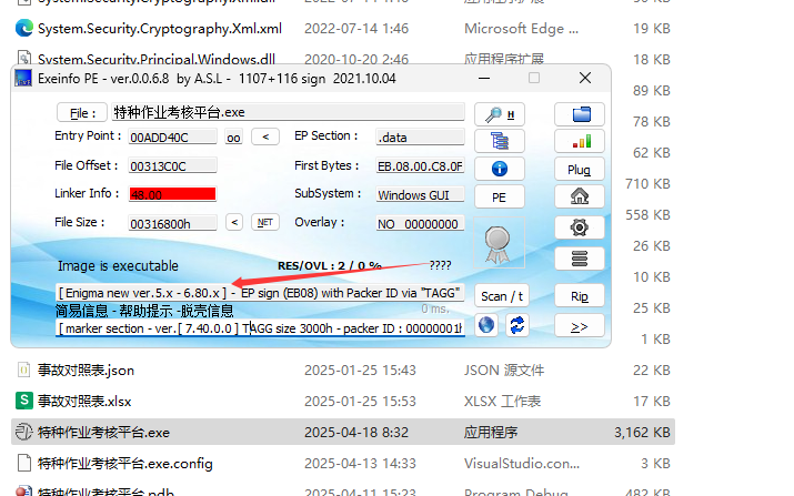 I put this main PE file into the ExeInfo PE tool for inspection.